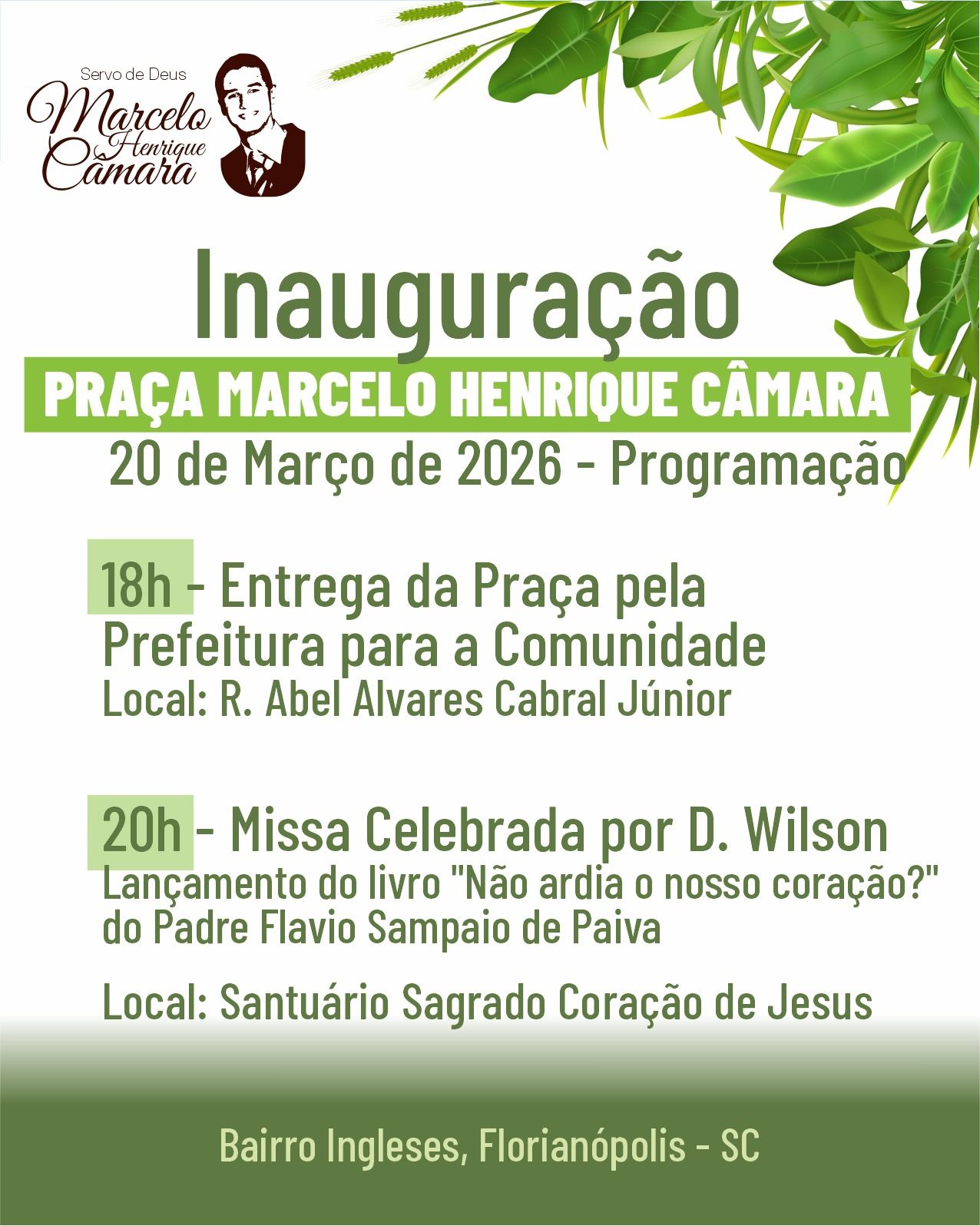 É com grande alegria que convidamos você e sua família para participar da solene inauguração da Praça Marcelo Henrique Câmara, promovida pela PREFEITURA DE FLORIANÓPOLIS, com a presença do prefeito Topázio Neto.